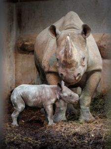 The eastern black rhino is classified as critically endangered, making Rhodri’s birth particularly significant for conservation efforts.
