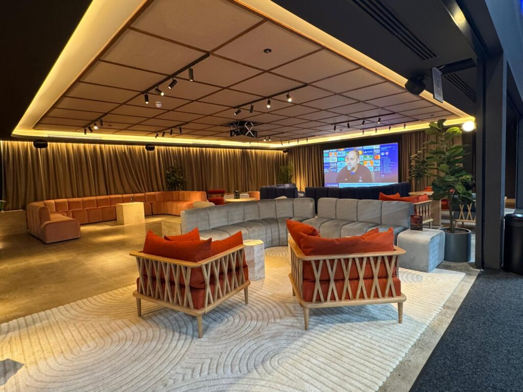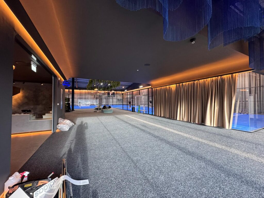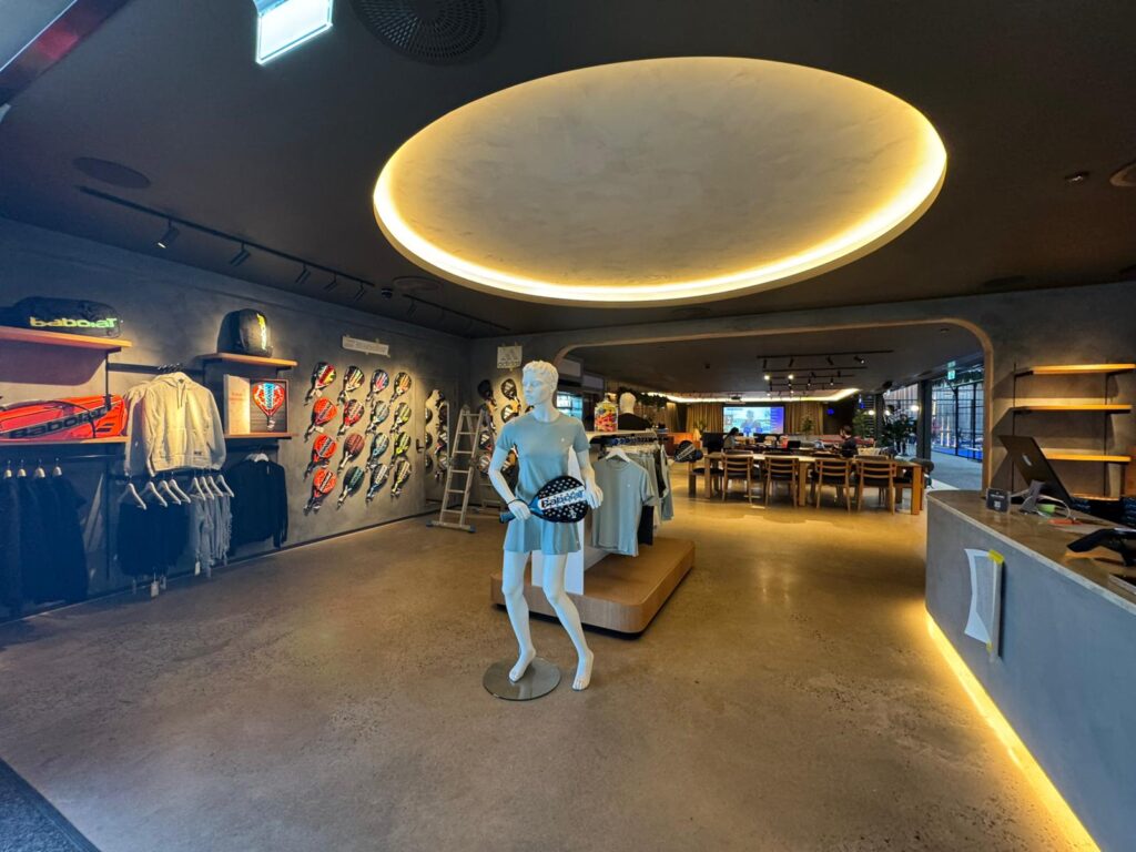 Padium has kitted out the 35,000 sq ft space to function more like a lifestyle hub than a traditional sports facility. Players can unwind in a dedicated wellness zone complete with two ice baths, exercise bikes and a sauna overlooking the courts. A lounge, co-working area, kitchen, shop and bar round out the offering, with a DJ booth adding energy to the atmosphere. Drinks range from smoothies and juices to alcoholic options.